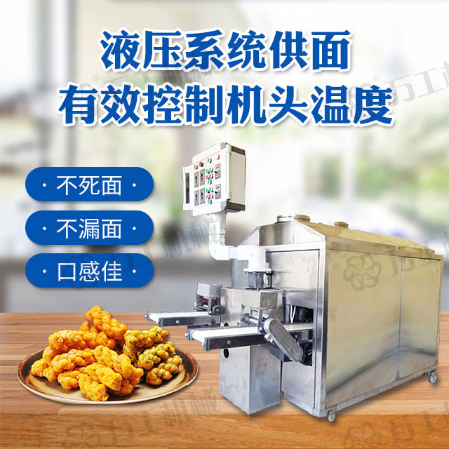 智能液壓四頭麻花機,操作簡單,采用三調(diào)速結(jié)構(gòu),生產(chǎn)時將和好的面團放入機器內(nèi),在靜壓推面器的作用下經(jīng)模具出條后,通過模具的旋轉(zhuǎn)自動上勁挽花,再由延時切段機自由控制麻花的長短,產(chǎn)品花形美觀漂亮,高效節(jié)能、安全衛(wèi)生、無噪音無污染,極大的提供高了生產(chǎn)效率和產(chǎn)品質(zhì)量。